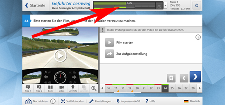 Im neuen geführten Lernweg hast du deinen Lernstand stets im Blick. Die Lernstandanzeige am oberen Bildrand zeigt dir, wie weit du im geführten Lernweg bist und wie viele Fragen du noch vor dir hast. Unter dem Bild stehen dir diverse Lernhilfen zur Verfügung. Bei den neuen Videofragen findest du hier die intelligente Lernhilfe, die dir zeigt, worauf du in dem Video besonders achten musst.
